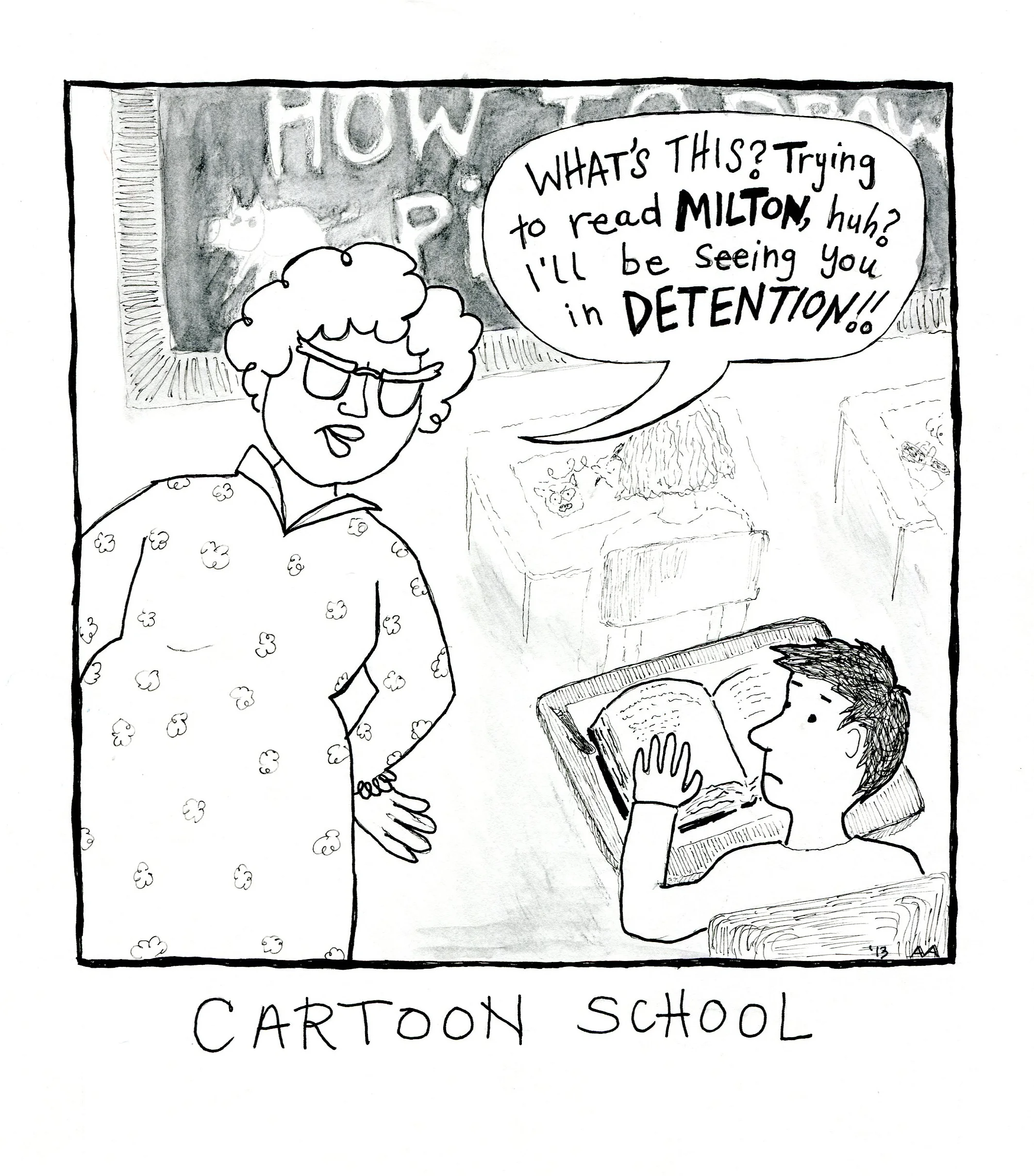 In the summer of 2013, I took a six-week cartooning course at the University of Alaska Fairbanks. Cartoon School. It was super fun.