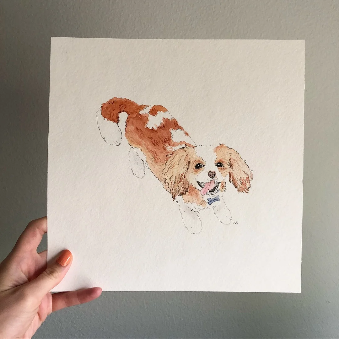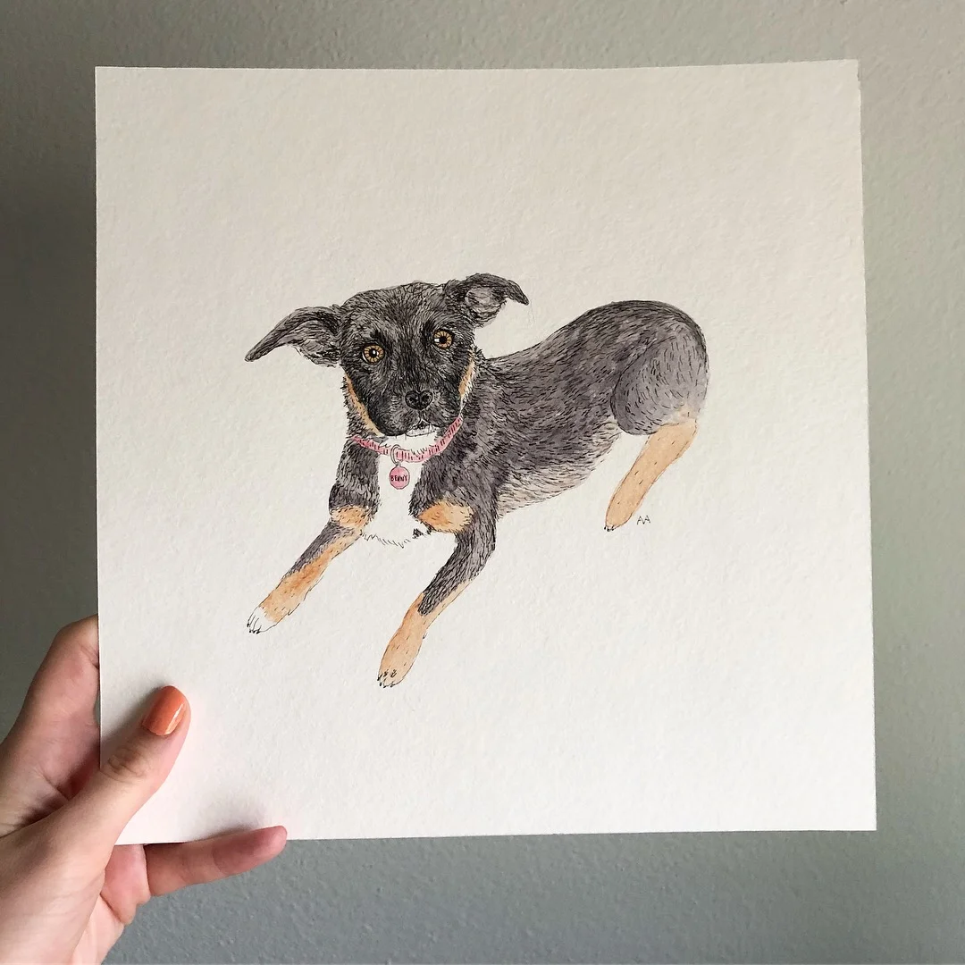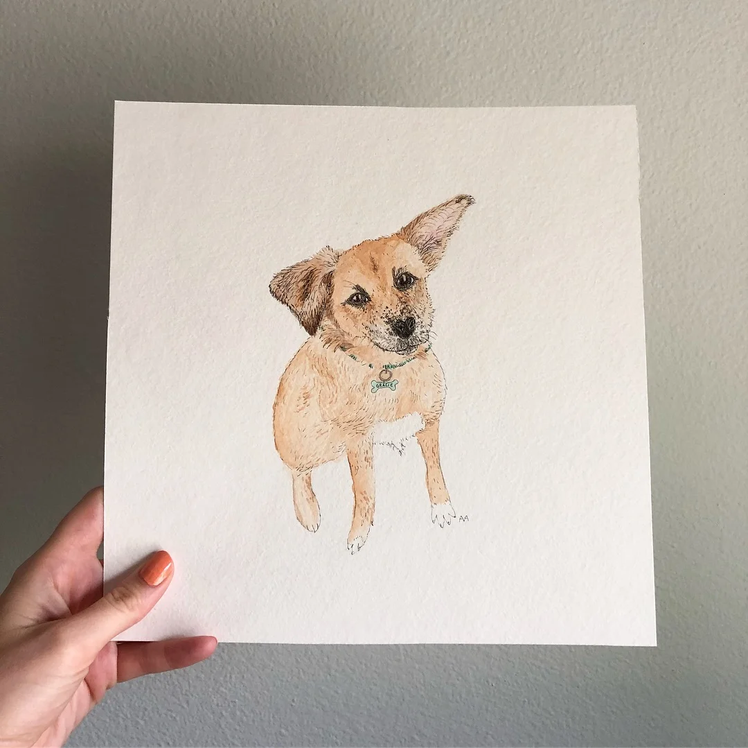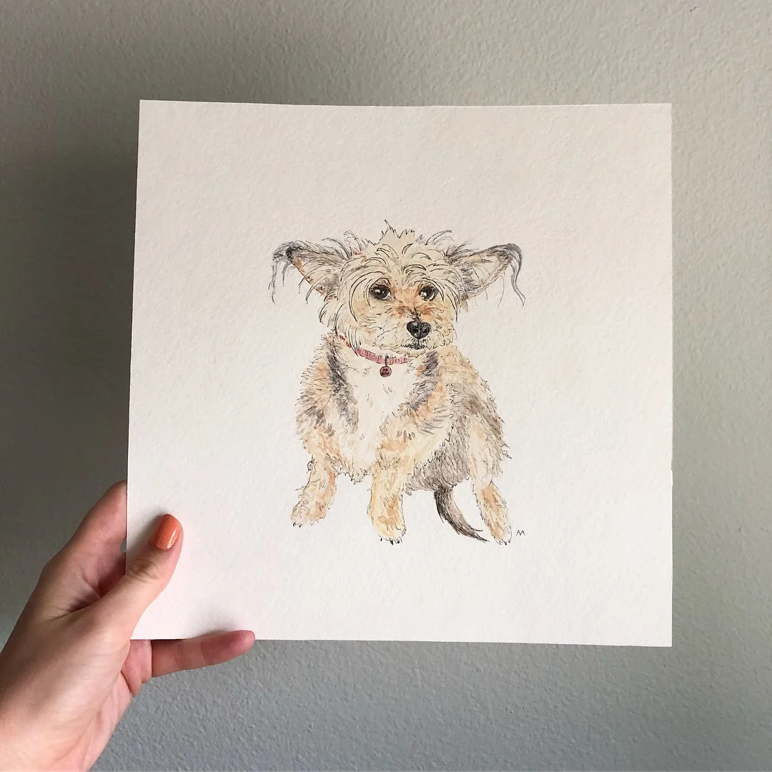 Watercolor & ink custom pet portraits (8 x 8 & 11 x 14)