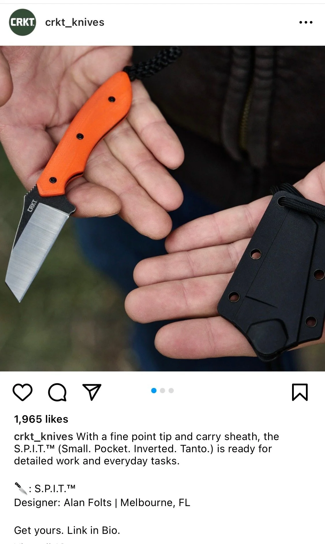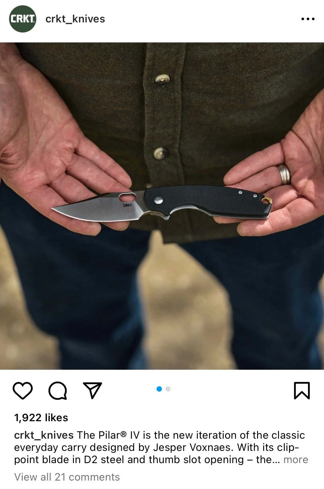 The lovely people at Blue Collar Agency needed help creating product descriptions and social media copy for their client's new 2023 knife and tool collection. I did research and wrote copy for the S.P.I.T.™ and updated the copy for the Pilar® IV, a new iteration of a popular everyday carry. Copy included product descriptions, social captions, email subject lines, and meta descriptions.